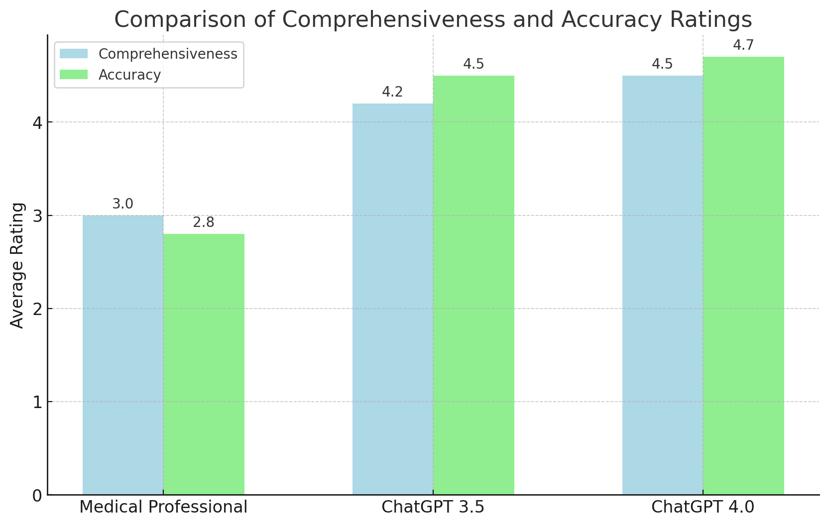 - ChatGPT’s responses were rated higher for being thorough and precise. This implies that the AI can synthesize complex medical information into a format that is both understandable and informative for patients, which is essential for addressing intricate medical queries.
