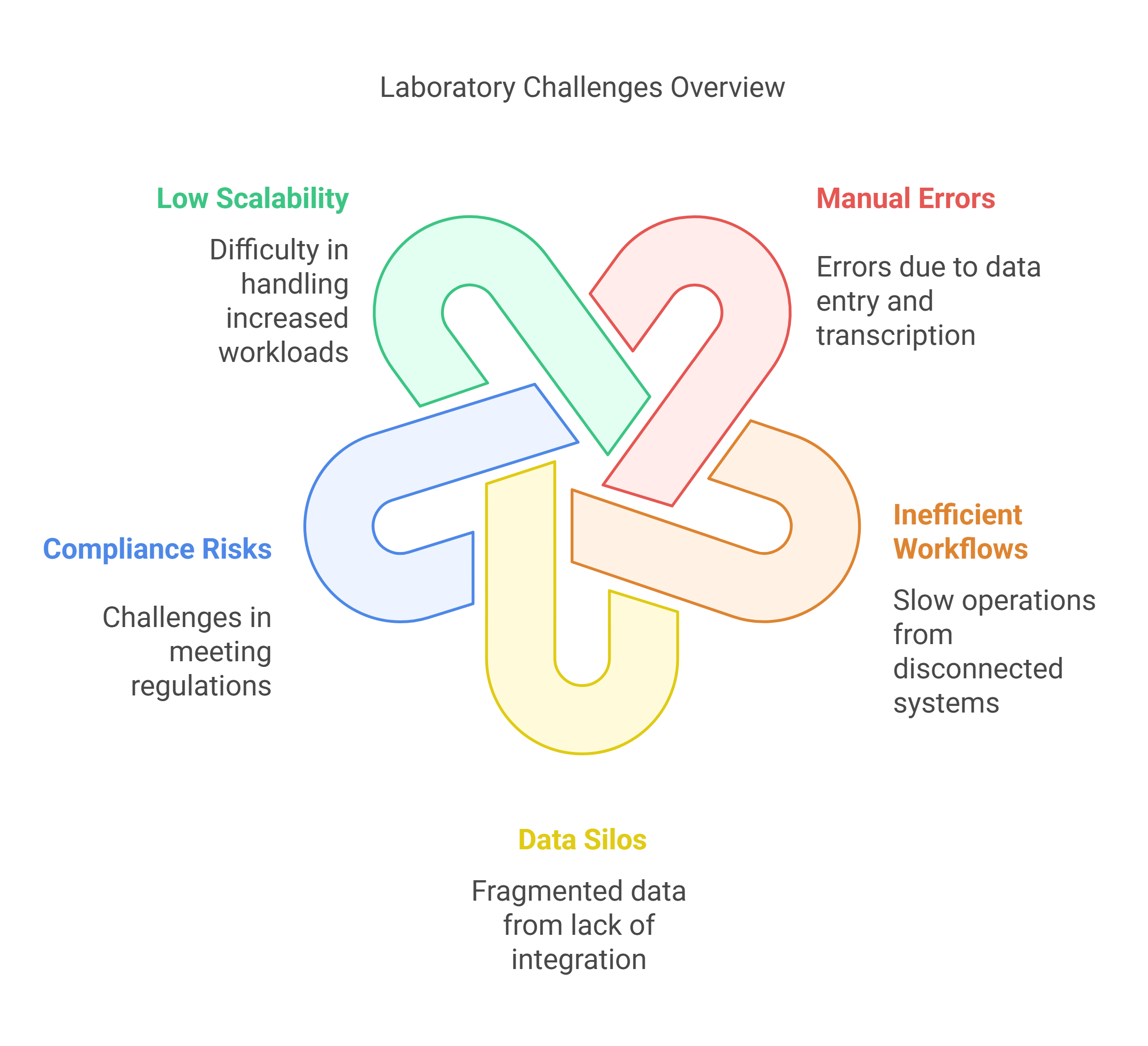 - Data Silos: Lack of integration between laboratory instruments and external systems results in fragmented data.