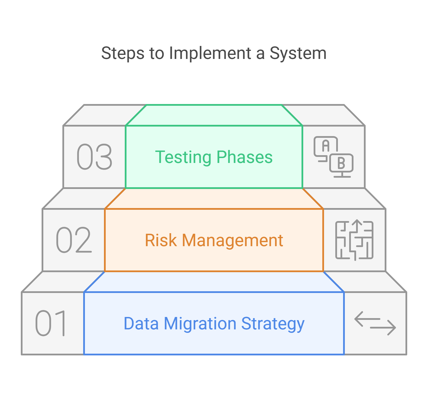- Data Migration Strategy: Plan how existing data will be transferred to the new system while ensuring integrity and security.