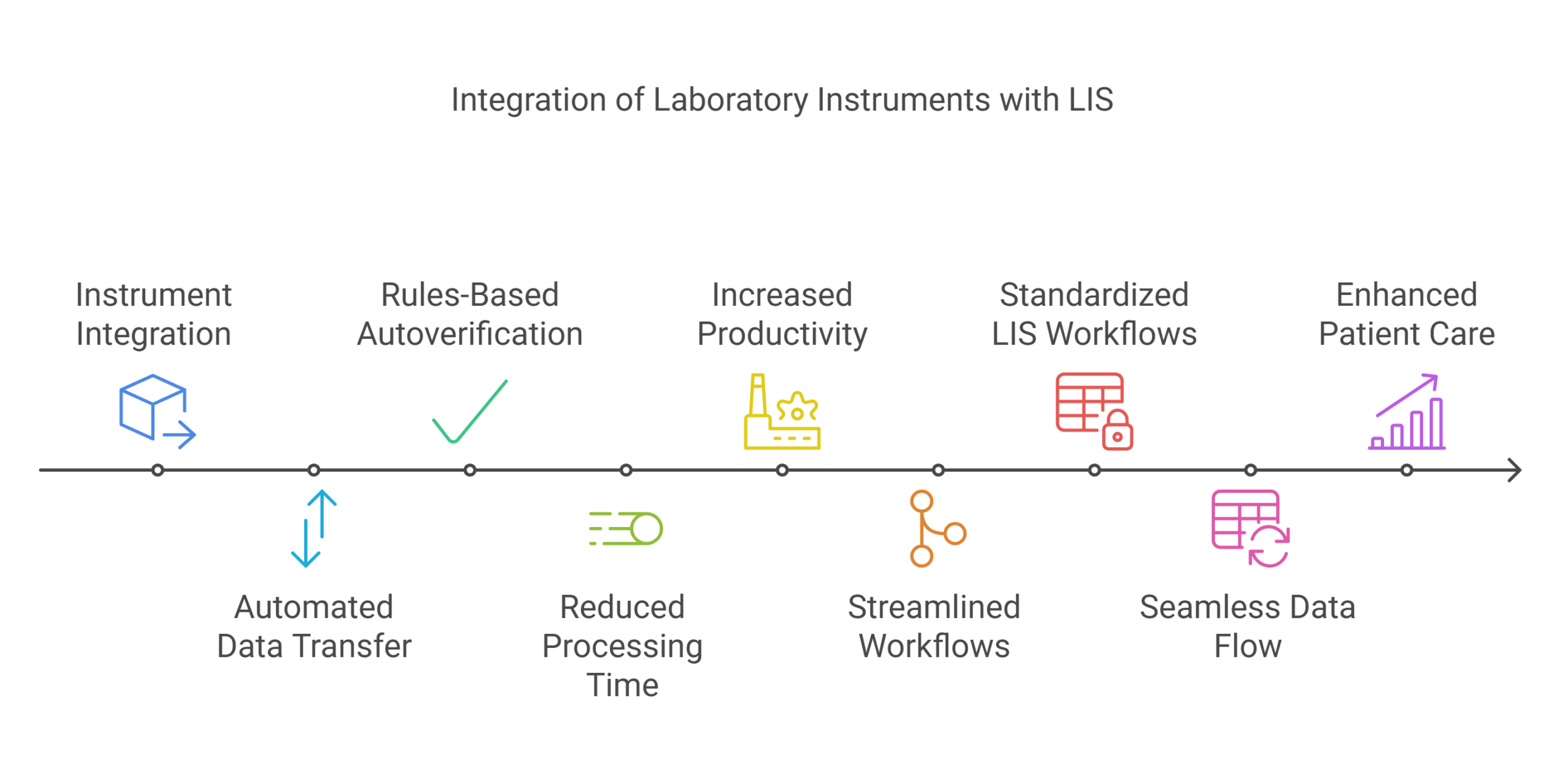 It also consolidates steps (from order entry to final report) into one seamless chain. Overall, labs report improvements in workflow efficiency, reduced redundant steps, and smoother operations when all instruments and systems are connected via an LIS [1].