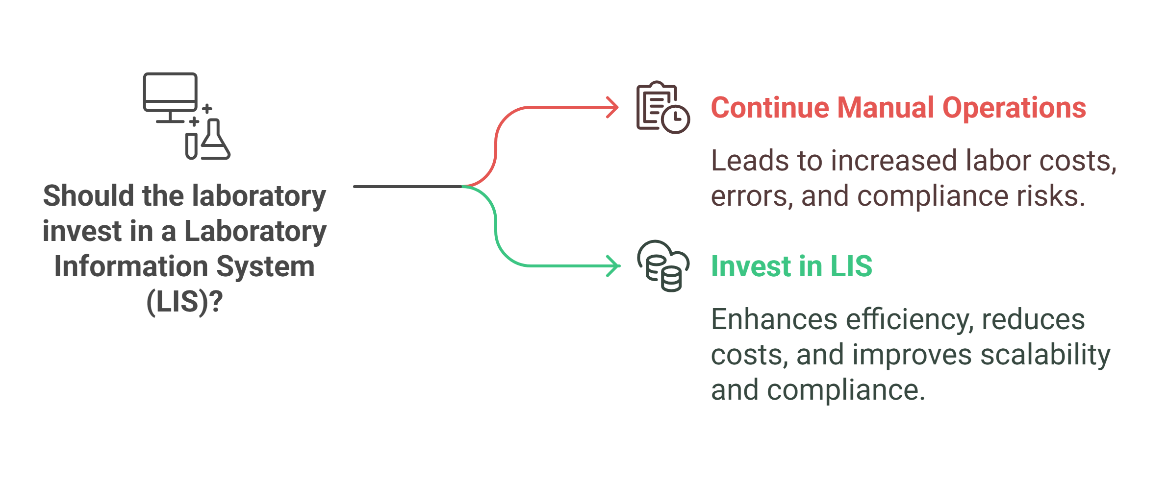 - Regulatory and Business Impact: Lacking direct integration can also have indirect financial impacts. Laboratories operate under strict regulations (e.g. CLIA, CAP accreditation requirements); transcription mistakes or undocumented results can lead to compliance violations. This risks regulatory fines or sanctions, which are costly and damage reputation. Additionally, errors or slow reporting can erode client trust, potentially losing business contracts. A lab that delivers incorrect or delayed results may incur costs in customer service and risk mitigation. In contrast, labs with robust LIS integration enjoy greater confidence from clients and inspectors due to demonstrable data integrity. Over time, investing in an LIS often proves more cost-effective than bearing the ongoing operational drag and risk exposure of a manual system [7].